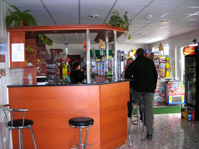 Az autós bolt, a kávézó és az autó-mosó mellett,